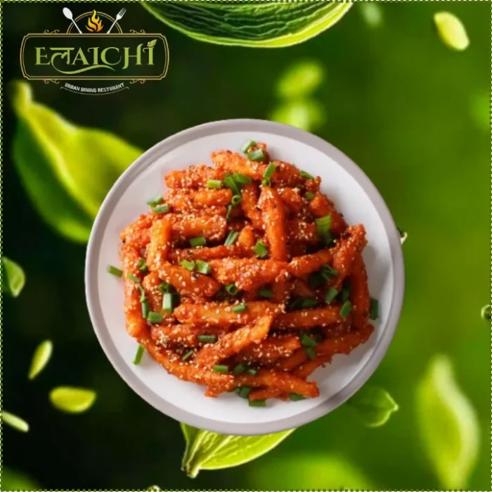 Chilly Potato is a popular Indo-Chinese appetizer made with crispy fried potato fingers tossed in a spicy, tangy sauce infused with garlic, soy, and green chilies. Garnished with spring onions and sesame seeds, this dish offers the perfect balance of crunch, heat, and flavor.